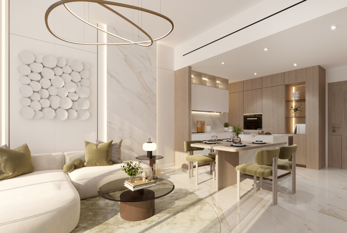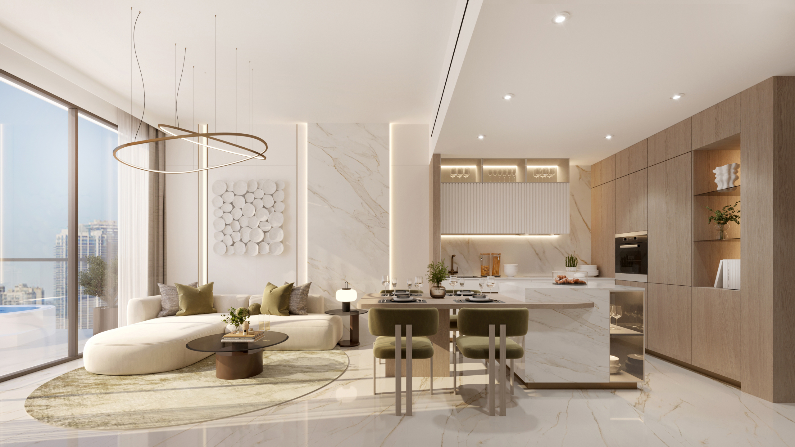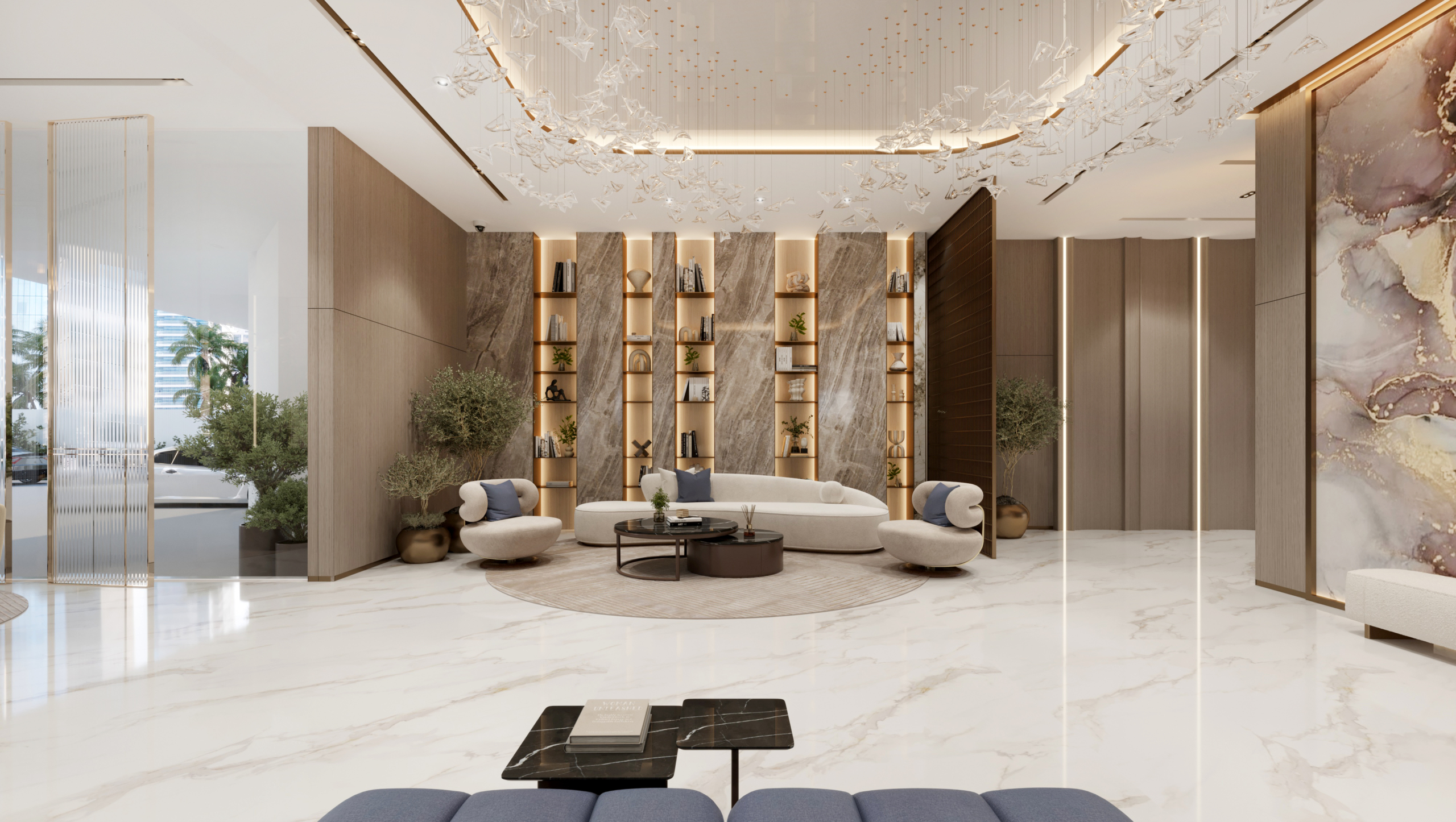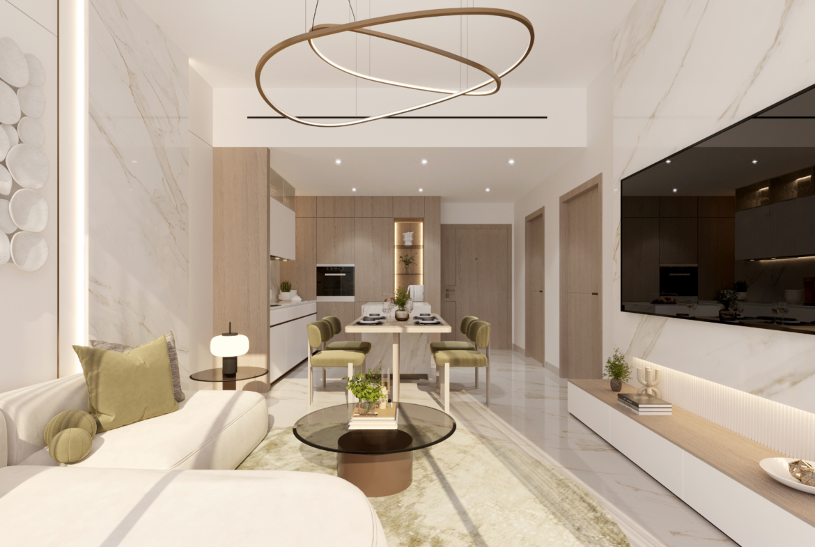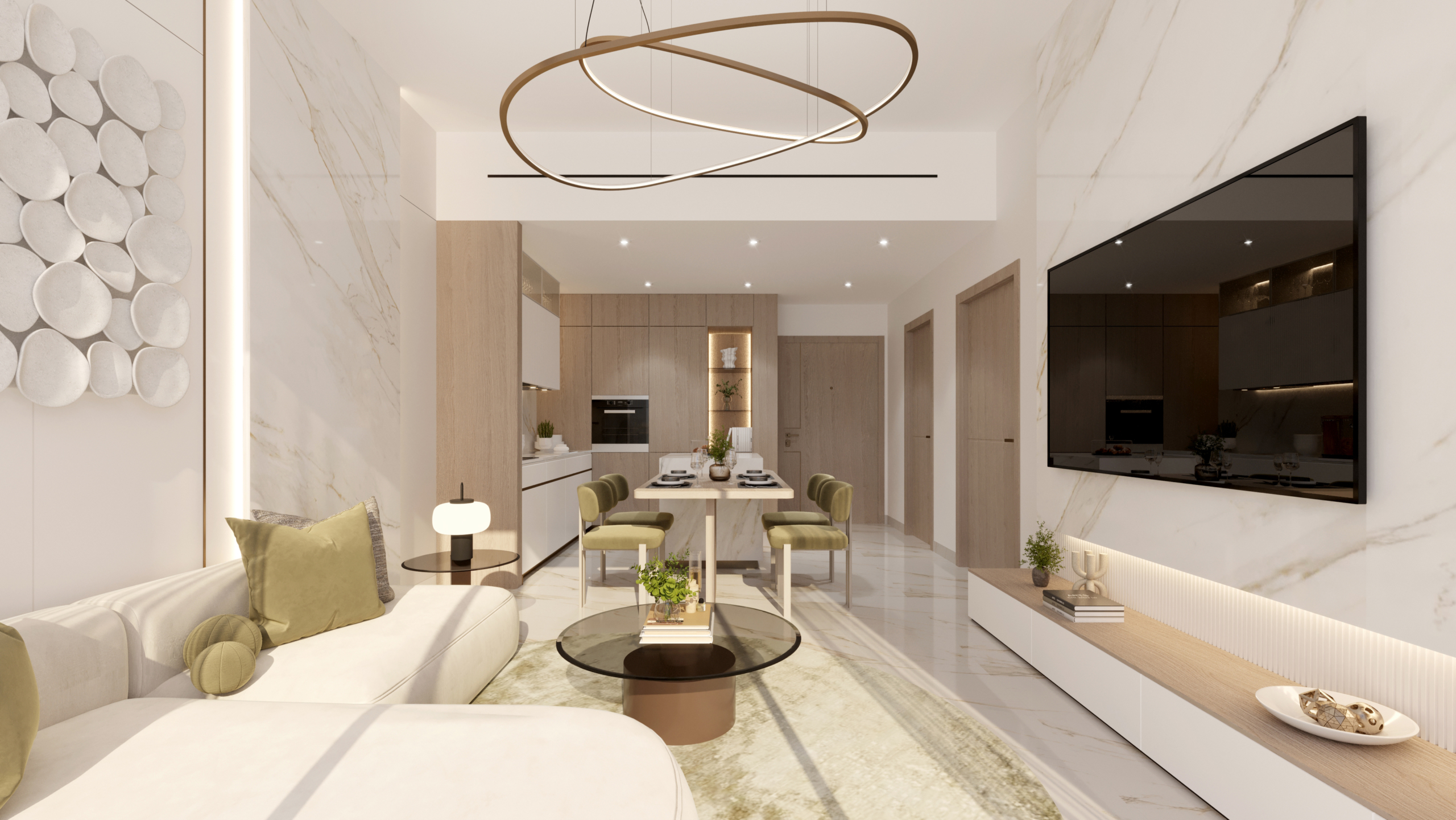The prime location at Dubailand Residence Complex is the pivot point for the project offering a secure and serene access to the rest of Dubai. Located few minutes away to Aquila School and GEMS Wellington School, the façade is a short drive to Dubai Outlet Mall, Academic City, Global Village and IMG Worlds. Located in the vicinity of the major arteries of transport, Burj Khalifa is about 20 minutes far, along with Dubai International Airport and Al Maktoum Airport within hand reach.The façade introduces 131 luxurious and exclusive apartments, which have pools in their own terraces, covered with facades lightened up by vertical vegetation. Enter and you are embraced by interiors that can only talk the language of good taste: the marble, gold finishing’s and one-of-a-kind designing that has made it all possible as the rooms are works of art. Open-plan arrangements and floor-to-ceiling windows extend light and interior creating the lack of a distinction between the comfort of the house and the serenity of the environment.