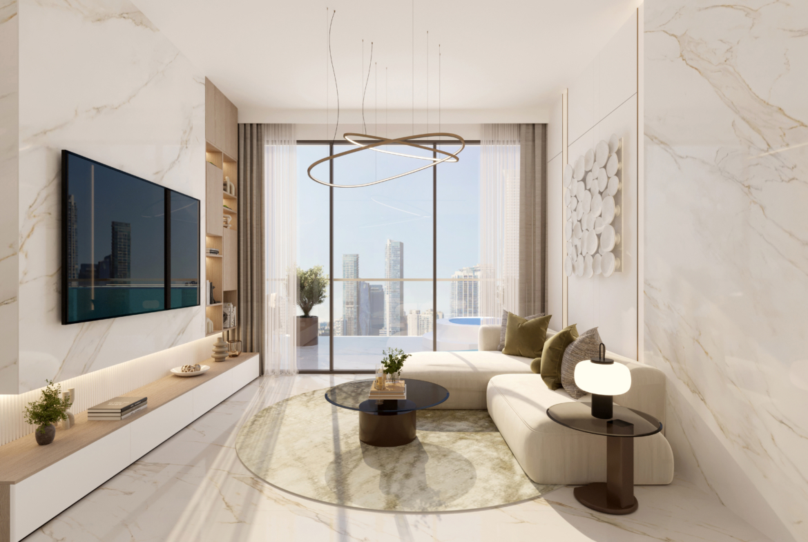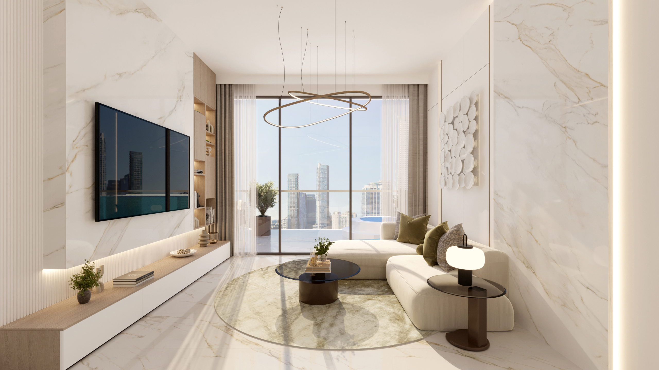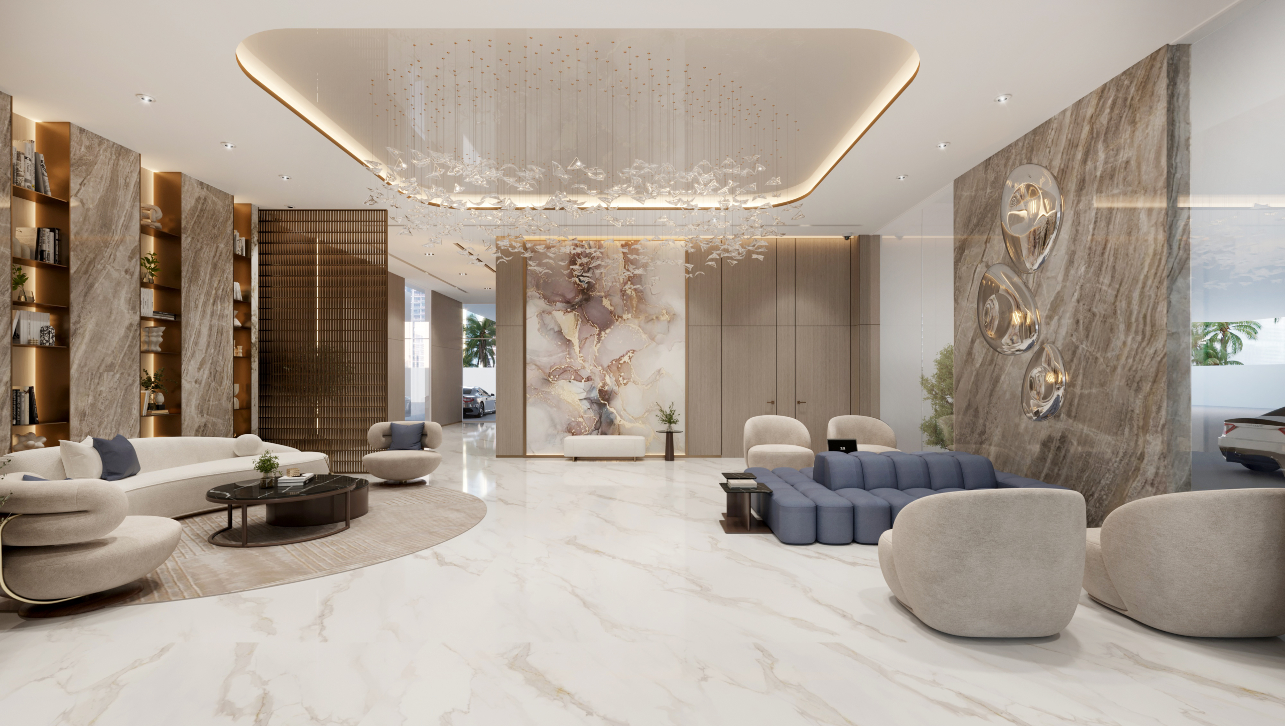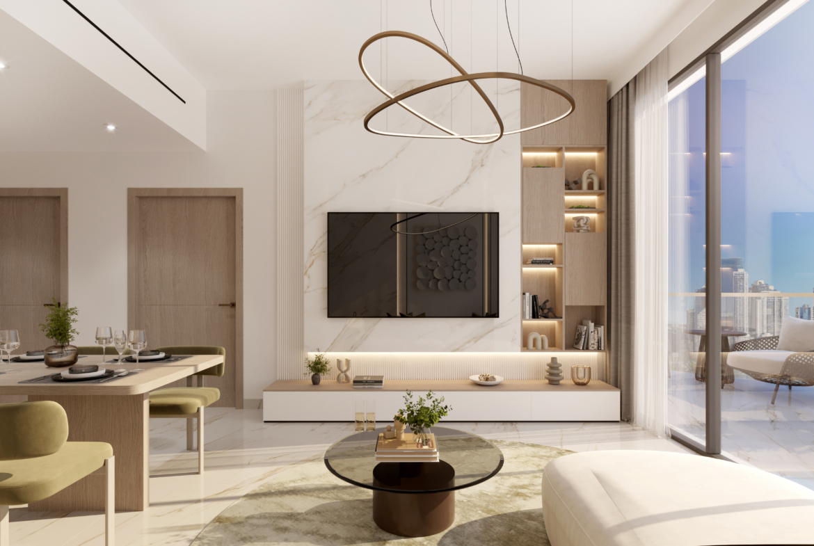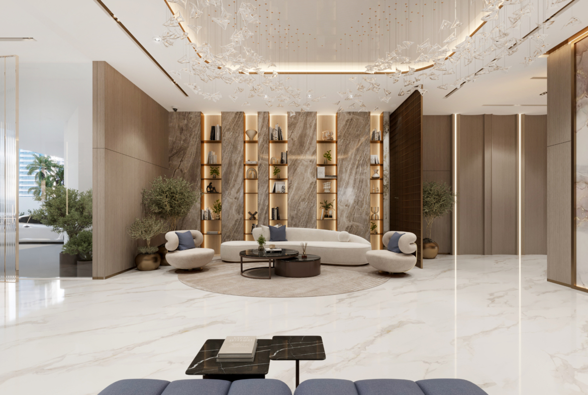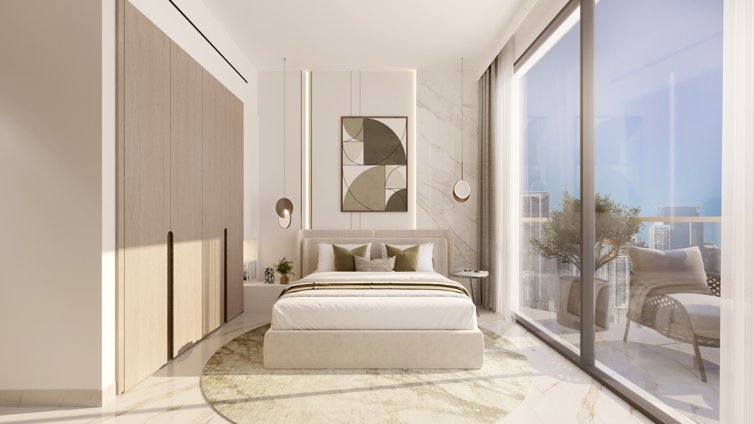 The prime location at Dubailand Residence Complex is the pivot point for the project offering a secure and serene access to the rest of Dubai. Located few minutes away to Aquila School and GEMS Wellington School, the façade is a short drive to Dubai Outlet Mall, Academic City, Global Village and IMG Worlds. Located in the vicinity of the major arteries of transport, Burj Khalifa is about 20 minutes far, along with Dubai International Airport and Al Maktoum Airport within hand reach.The façade introduces 131 luxurious and exclusive apartments, which have pools in their own terraces, covered with facades lightened up by vertical vegetation. Enter and you are embraced by interiors that can only talk the language of good taste: the marble, gold finishing’s and one-of-a-kind designing that has made it all possible as the rooms are works of art. Open-plan arrangements and floor-to-ceiling windows extend light and interior creating the lack of a distinction between the comfort of the house and the serenity of the environment.