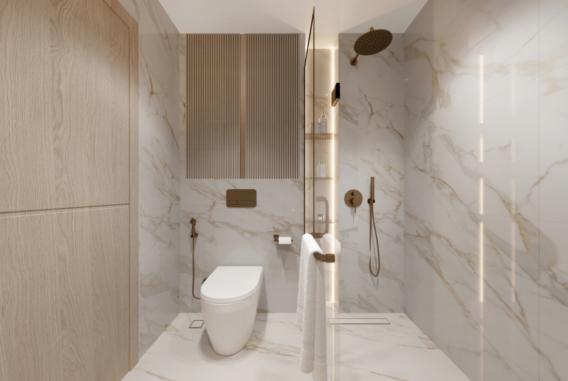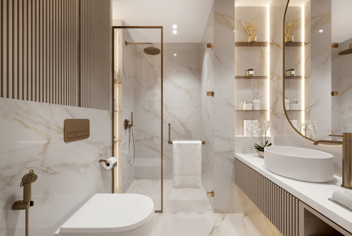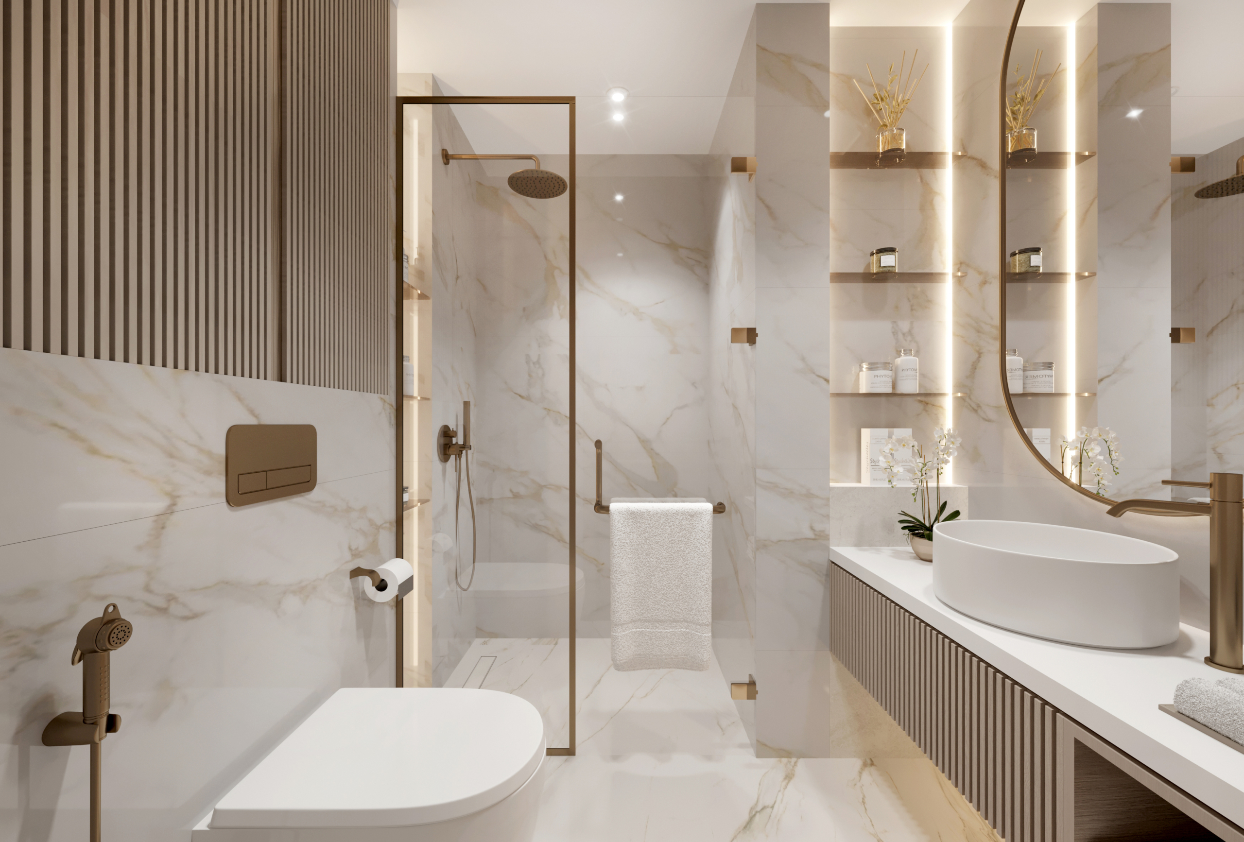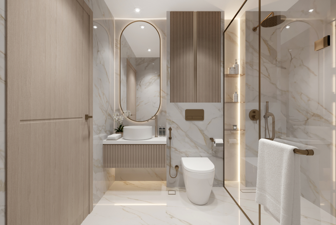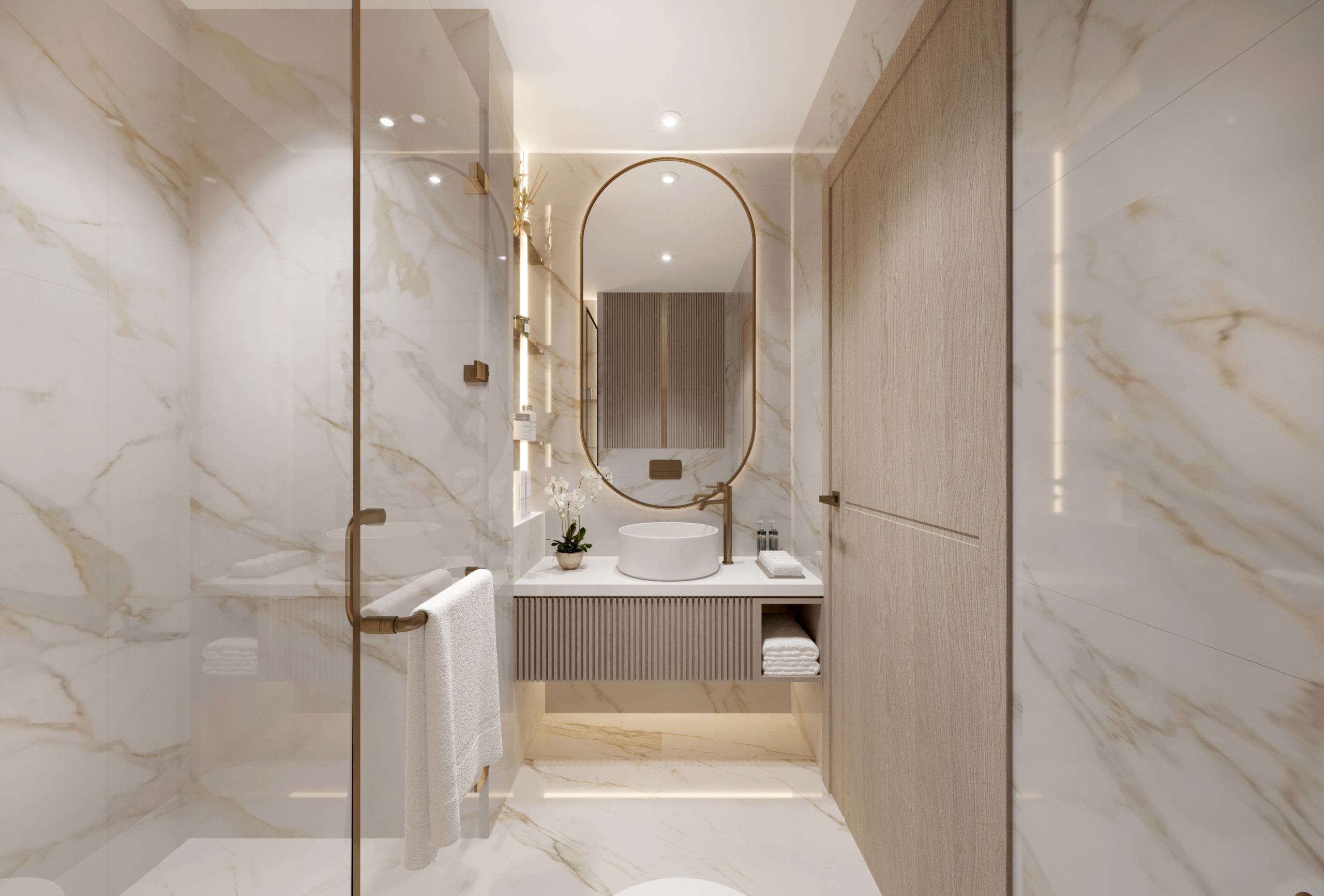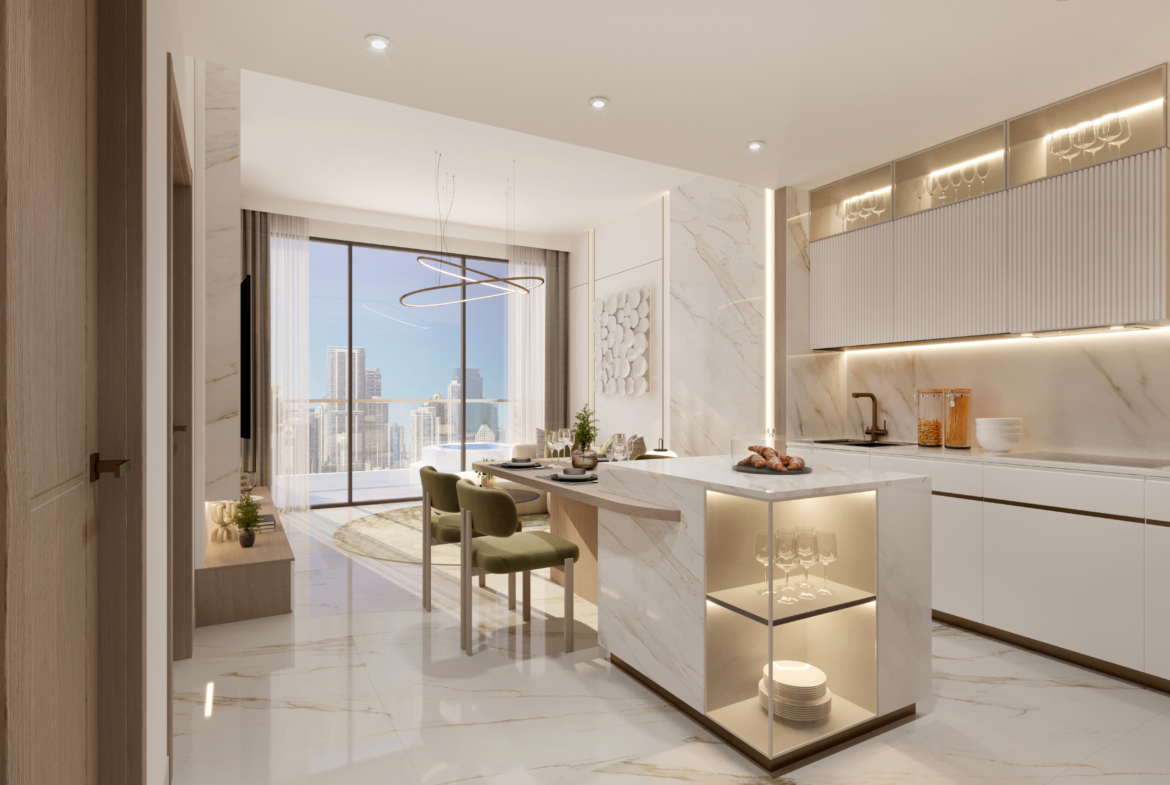 The prime location at Dubailand Residence Complex is the pivot point for the project offering a secure and serene access to the rest of Dubai. Located few minutes away to Aquila School and GEMS Wellington School, the façade is a short drive to Dubai Outlet Mall, Academic City, Global Village and IMG Worlds. Located in the vicinity of the major arteries of transport, Burj Khalifa is about 20 minutes far, along with Dubai International Airport and Al Maktoum Airport within hand reach.The façade introduces 131 luxurious and exclusive apartments, which have pools in their own terraces, covered with facades lightened up by vertical vegetation. Enter and you are embraced by interiors that can only talk the language of good taste: the marble, gold finishing’s and one-of-a-kind designing that has made it all possible as the rooms are works of art. Open-plan arrangements and floor-to-ceiling windows extend light and interior creating the lack of a distinction between the comfort of the house and the serenity of the environment.