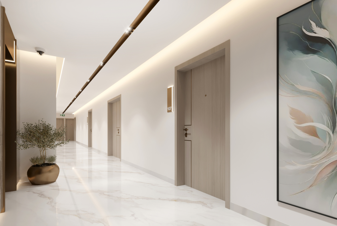 A temperature-regulated, infinity swimming pool with its sun lounges, fire pits, and cabanas extends to the skyline on the rooftop offering a high-altitude sky-scraping center point to take it or leave it. Throughout the property, health areas and recreation zones, gym, yoga deck, outdoor cinema, BBQ lawns, jogging paths enable the residents to define their adventure on a day-to-day basis. Automation of the smart-home and sustainability is the running motif-convenience and consciousness. Family life is worry free and safe with covered parking, charging EV‑stations, 24/7 security, concierge service and children playing areas.